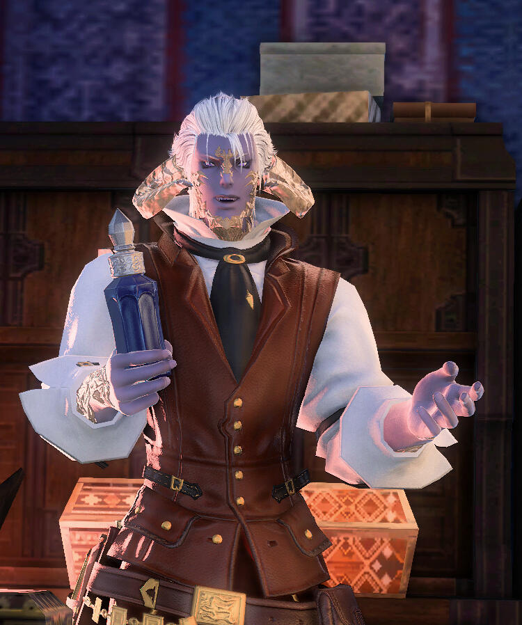 Owner and alchemist behind Promissio Impleta, Linx built the shop after moving to Eorzea. Linx's penchant for sales and fascination with experimentation has led to a number of useful and curious concoctions. He's friendly and rather outgoing while always looking for new ways to improve his work and shop.